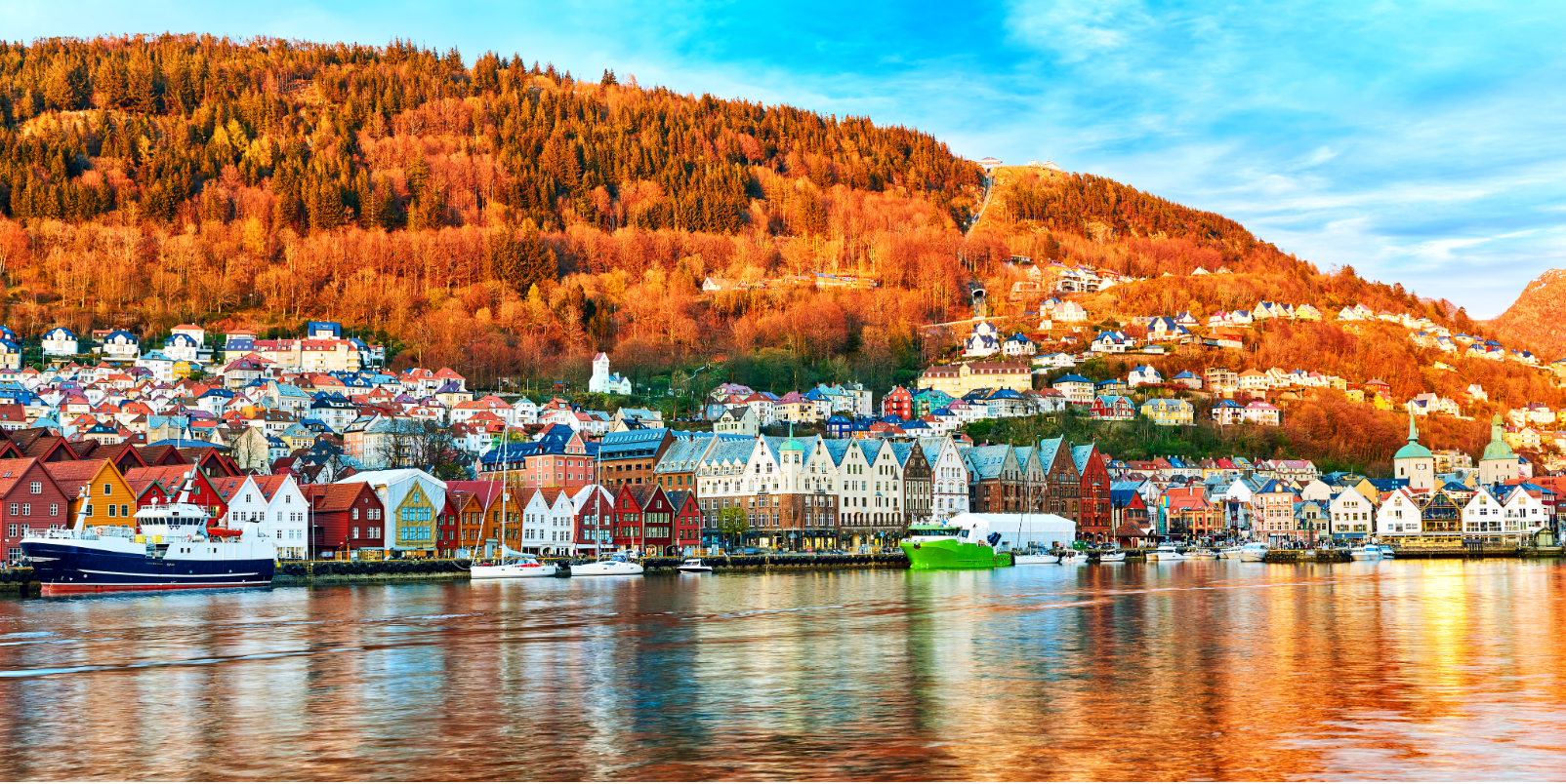 Montée en Funiculaire, qui avec ses 320 mètres d'altitude vous offre un panorama splendide sur les fjords, la ville et ses montagnes verdoyantes. Croisière dans les fjords dans l'après-midi.